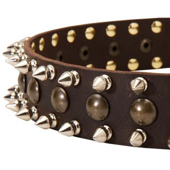 1/2 inch (40 mm) wide Studded and Spiked Leather Dog Collar for Newfoundland